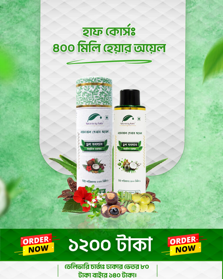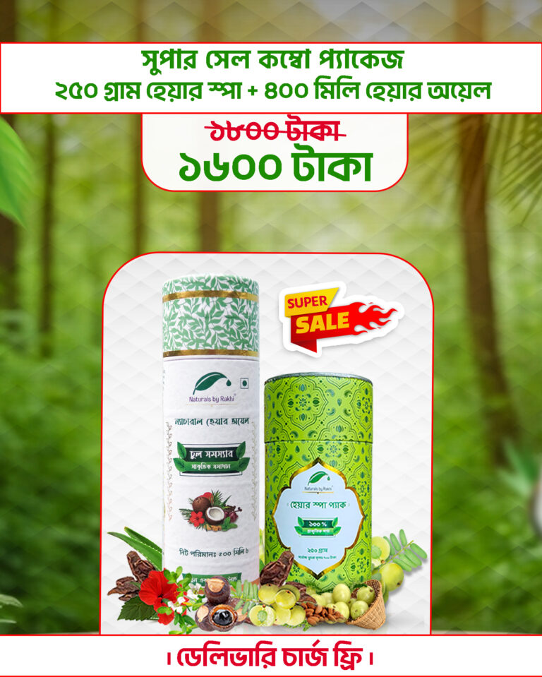 চুল পড়ার নানা কারণ হতে পারে। বংশগত কারণে কিংবা পুষ্টির অভাবে, এছাড়া রয়েছে আরও নানা কারণ । বেশিরভাগ সময় চুলের সঠিক যত্ন নেয়া হয়না আমাদের , কিন্তু সঠিক যত্ন নিলে চুল টাক হয়ে যাওয়া থেকে রক্ষা পাওয়া যায়। আমাদের তেলটি প্রায় ৩০টি প্রাকৃতিক উপাদানে তৈরি, যা চুল পড়া কমাবে, নতুন চুল গজাতে সাহায্য করবে, চুল লম্বা, ঘন, সিল্কি, শাইনি ও কালো করবে, এবং খুশকিও কমাবে। কিছুদিনের ব্যবহারে আপনি পরিবর্তন টা অনুভব করবেন। চুল সমস্যা সমাধানের কমপ্লিট সল্যুশন হচ্ছে আমাদের কম্বো প্যাকেজ গুলো।